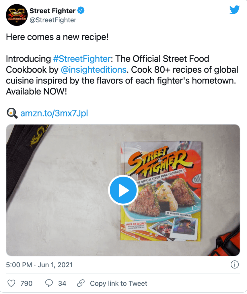 Below is an example of one video with Insight Editions for their upcoming Disney Princess Enchanted Christmas Pop Up Advent Calendar.Another video trailer promoting the company’s Street Fighter Cookbook was posted by the official Street Fighter Twitter Account.